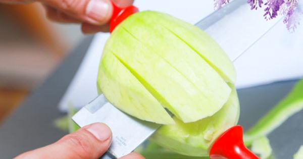 • 當你的刀子無法再切下任何果肉時,說明已經切到果核了。