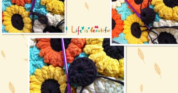 鉤完之後,跟第四朵(圖片裡的橙色向日葵)進行連接