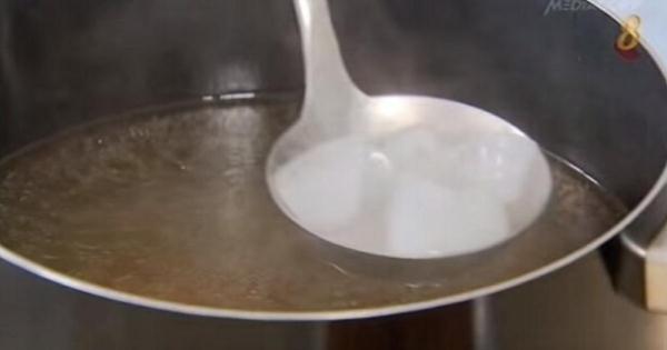 ▼只要在湯杓裡加入冰塊,就能去油?!