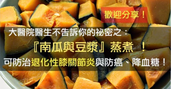 大醫院醫生不告訴你的祕密之:『南瓜與豆漿』蒸煮 !可防治退化性膝關節炎與防癌、降血糖!