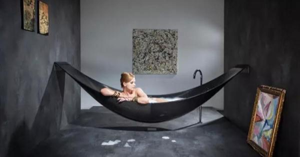 對,你沒有看錯,這個吊床狀的東西,是浴缸~