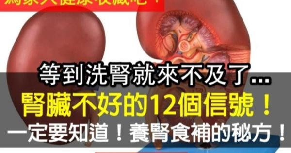 等到洗腎就來不及了!腎臟不好的12個信號,告訴你養腎食補的秘方!一定要看、快分享出去吧! 觀看人數:51