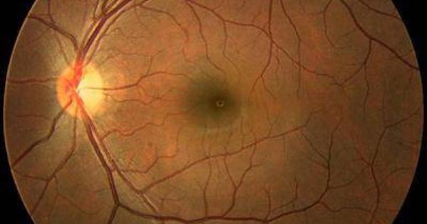可以看到深紅色的血管集中的部位就是視覺盲點,中心部位就是視場的中心。