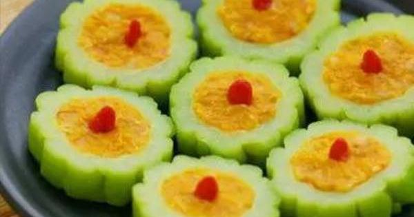 15)將拌好的肉餡土豆泥填入苦瓜中,切片即可。