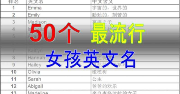 當你為寶寶挑選一個英文名時,你也許希望這個英文名既時尚流行,同時又具有你喜歡的含義。這裏我們為你準備了近年來最流行的女孩英文名,並加注了中文含義,希望你能從中為寶寶選出一個稱心的英文名,或從這些最流行英文名中獲得靈感。