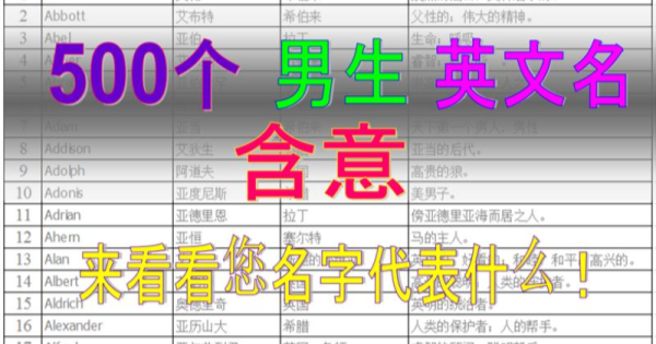 500個 男生英文名字的意義!想知道您的名字的來源和含意,就來看看~ 觀看人數:492