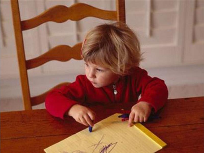 1. 錯亂塗鴉。由於動作協調性不夠,畫在紙上的畫是一些淩亂的線條,有時還會將線條畫出紙外。