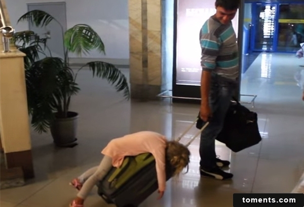 ▲出國累到趴,爸爸扛回家~