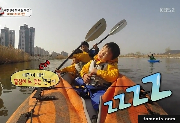 最後附上韓國現在人氣最火的三胞胎大韓、民國、萬歲,在《超人回來了》EP74集中,劃船劃到一半睡著的大韓讓全韓國人民尖叫啦!