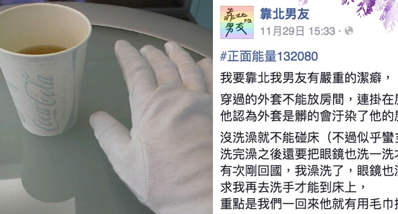 有次剛回國,我澡洗了,眼鏡也洗了,只是打開旅行箱拿東西,他就要求我再去洗手才能到床上,