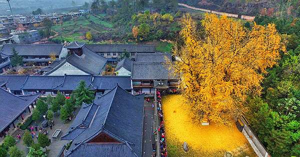 春暖花開的時節,奼紫嫣紅的花兒非常美麗,但秋季也有獨特的風景。中國西安羅漢洞村觀音禪寺內有一棵千年銀杏樹,每年秋天,金黃的葉子落下,在地上舖成厚厚的黃金落葉,看起來非常美麗。這種獨特的景色吸引了很多遊客前來參觀。