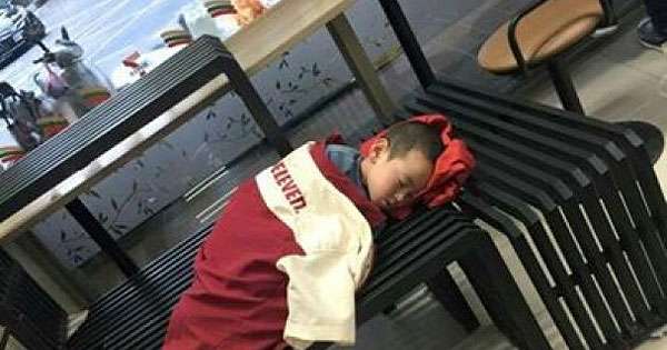 ▼一名在便利商店工作的網友在臉書的爆料公社中發表了一張照片,照片中的小朋友,在便利商店中的椅子上睡著了,僅用外套當作枕頭,這名好心的店員,怕店內的冷氣太冷,將自己的製服當作外套蓋在小朋友身上,並且在PO文中寫著「將心比心,小時候也是這樣長大的,跟著父母東奔西跑的日子,我懂。」感動了上萬網友按讚。