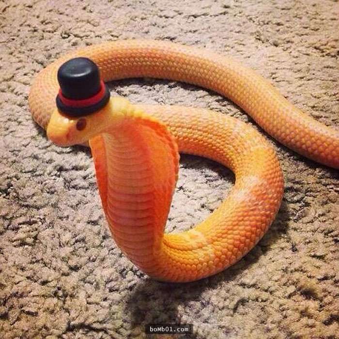 ▼4. 戴著帽子,貼上鬍子的蛇變得很可愛。