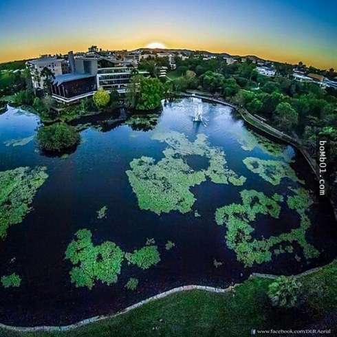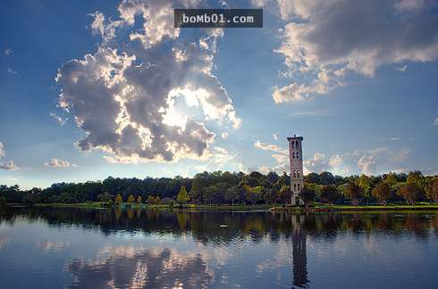▼1. Berry大學湖水與建築物相互交映就像一幅畫。