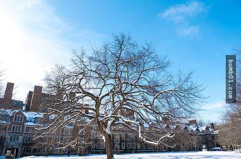 ▼25. Pennsylvania大學裡連枯木都被白雪映得像藝術裝飾。