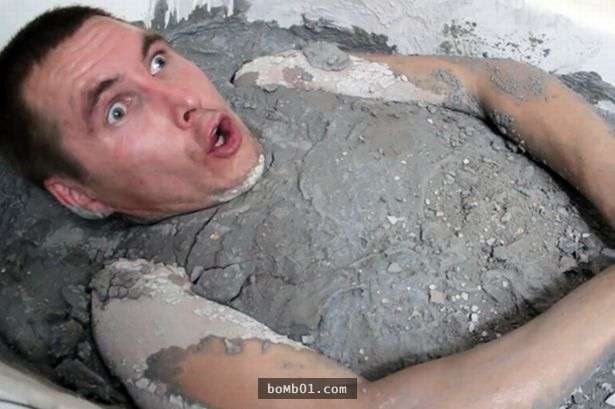 他很想知道泡個「水泥浴」是什麼感覺,幾個小時後他就超希望時光倒流取消自己這個決定!
