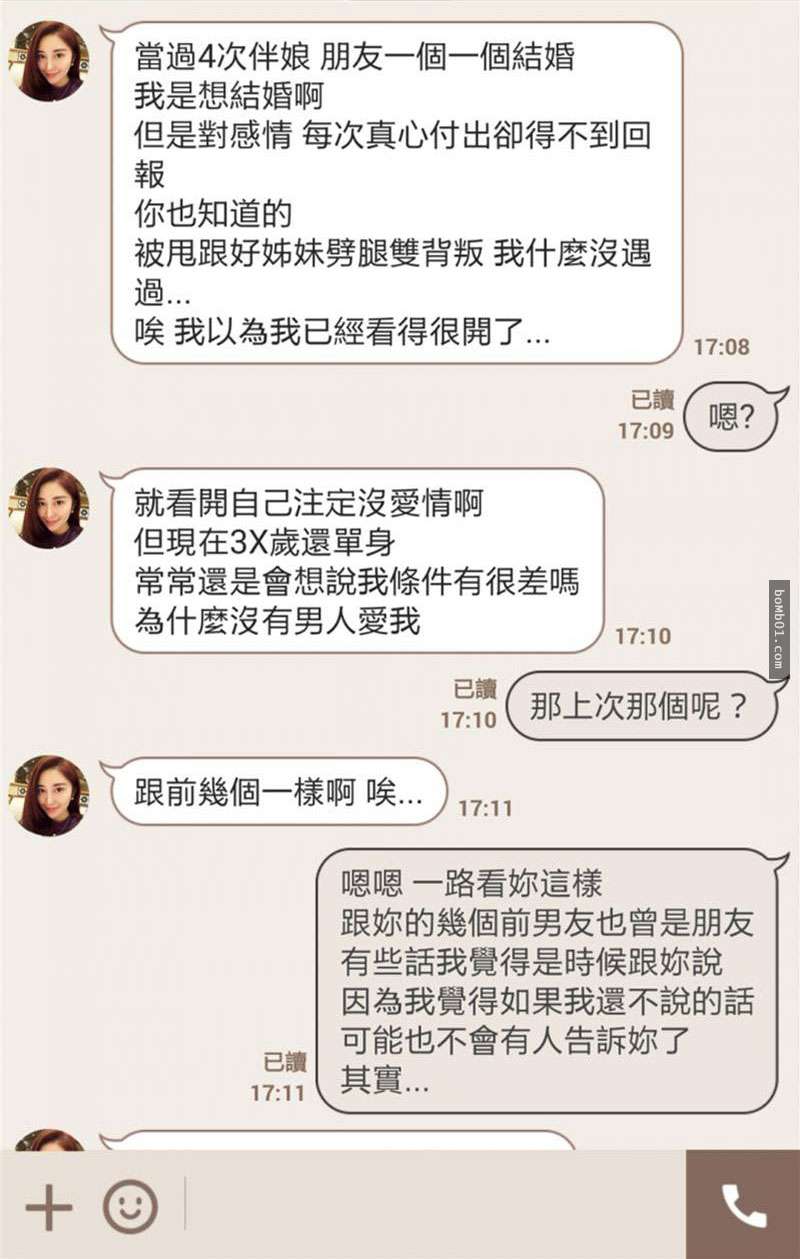 聽完前女友訴苦「我條件那麼好為甚麼沒男人要?」,他終於忍不住說出沒男人敢對她說的內心話! 觀看人數:425