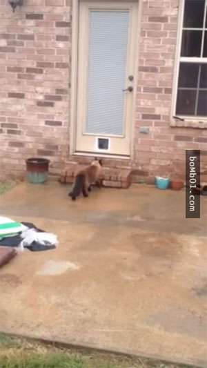下面這位主人也有過同樣的經歷,為了讓自己從頻繁的開門工作中解脫出來,他花費一個半小時安裝了寵物門。