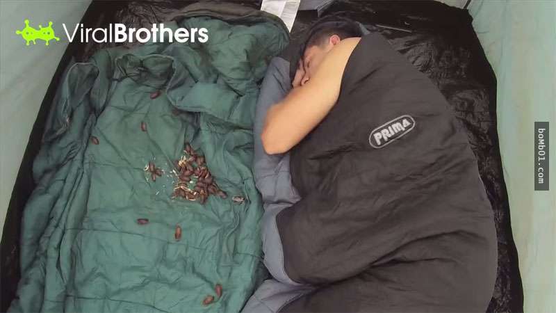 她準備了一盒超可怕的蟲子倒在了帳篷裡,男友看到後差點嚇哭了。