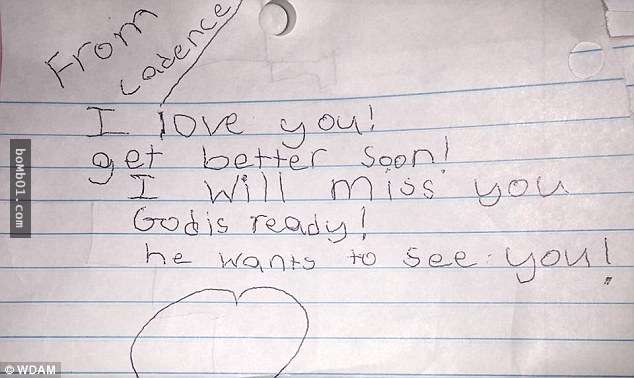 美國密西西比州的這位爺爺已經在醫院住了一段時間,隨著時間逝去,身體也越來越虛弱,他的8個孫子偶爾會來探望他,而就在某天的早晨,他7歲的孫女坎登絲(Cadence)遞給了他一張紙條…