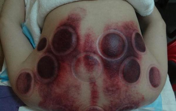 刮痧不過是對背部和頸部皮膚進行垂直和平行方向的雙重擠 壓,受到強烈擠壓頓挫之後,皮下粘膜毛細血管破裂造成的淤血。