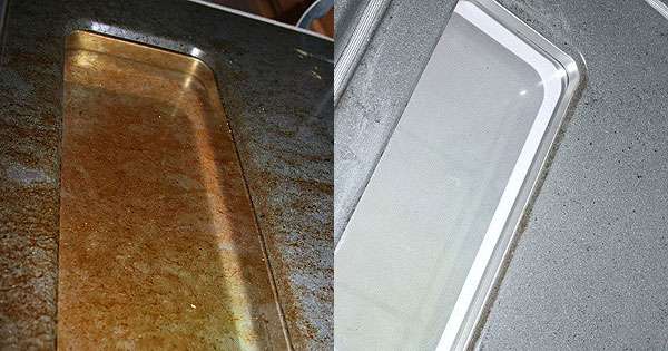 ▼烤箱的汙跡就會不見了!當然如果還有點小汙跡,可以使用海綿再去拭擦掉。