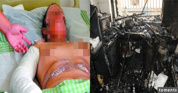 含有易燃性溶劑的殺蟲劑,與火源接處引發爆炸,廚房很快就被大火淹沒,這個可憐的媽媽渾身著火,高達85%的燒傷,緊急送醫後不幸因為心肺衰竭死亡。