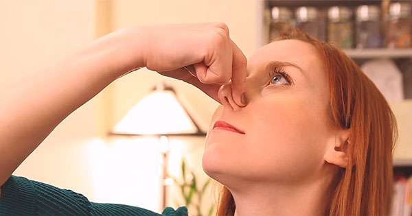 仰頭,屏住呼吸,捏住鼻子,等到感覺缺氧(大概20秒)時再放開就能解決鼻塞問題!