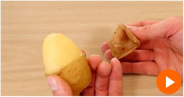 一般來說,馬鈴薯去皮都得花上一番工夫,不小心的話還會削到手: