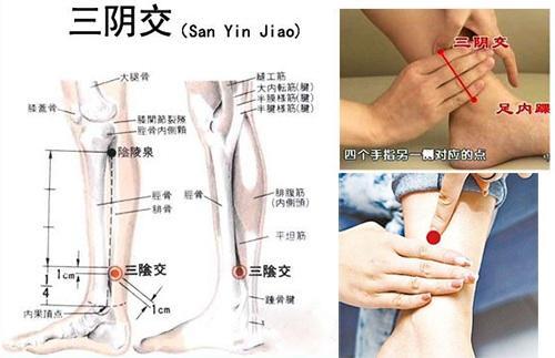 不老穴——三陰交 按摩身上的穴位,能起到很好的保健作用。對女性來說,三陰交穴尤其重要,可以說是女人的“不老穴”。它是婦科病的“靈丹妙藥”,有人就把它稱為“女三裏”。經常按揉此穴,能幫助女性維持年輕,延緩衰老,推遲更年期。三陰交穴是足太陰脾經、足厥陰肝經、足少陰腎經這三條陰經的交集穴,故而得名。它在小腿內側,足內踝尖上3寸(即除拇指外其餘四個手指並起來的寬度)、脛骨後方凹陷處。