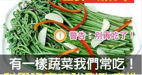 其中歐蕨伊魯苷超過安全限值達到37倍,苯草酸超限22倍。 據萊百食品安全實驗室進行蕨菜致癌的動物餵養試驗表明,蕨菜可使大鼠誘發胃癌、腸癌、乳腺癌、膀胱癌、白血病等。 “萊百食品安全實驗室”的研究人員還對經過烹調加工過的蕨菜致癌試驗表明,即使經過加工的蕨菜,也能誘發癌症。烹飪加工過程,無法破壞蕨菜中致癌物質的分子結構,甚至還發現了另外一些可能致癌的新化合物。 至此,您的餐桌上是不是將少了一道美味? 轉給你的朋友或者親人看看吧,或許,他們還不知道。