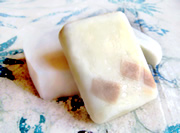 2. 參考油脂的皂化值,計算所需的氫氧化納重量,及所需 水的重量,混合製作鹼水。 3. 配製鹼水時,將氫氧化納分放緩慢倒入水中,再以不鏽 鋼長匙輕輕攪動,在此同時,放入溫度計監控液溫,使 之緩緩降到所需的攝氏50度。 4. 將油脂混合後,放在不鏽鋼鍋內,以瓦斯爐或電磁爐加 熱,用小火加溫到攝氏50度。 5. 當油溫、鹼水溫度都達到50度時,將鹼水倒入油中混合 ,並持續攪拌20分鐘。 6. 當液體成美乃滋狀時,倒入預先準備的模型中。(模型 可用裝鮮乳的紙盒,或裝茶飲料的紙盒,也可以自製木 盒來用)。 7. 模型要以乾布包,或其他可保溫的物品包起來保溫八小 時左右,因為皂化還在進行,若不保溫會皂化不完全, 製皂就失敗了。 8. 待恢復為常溫、變硬後,即可進行切割分裝。