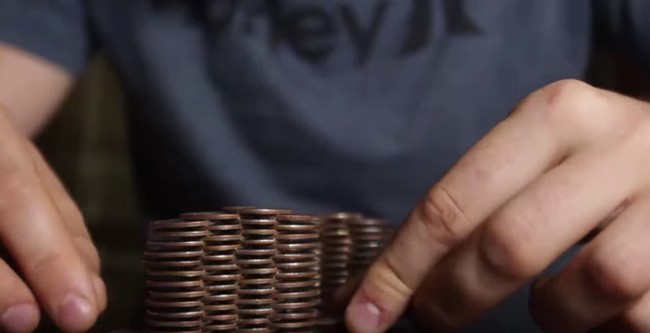 Youtube紅人Crazy Russian Hacker最近做了件超瘋狂的事!他先將銅板疊成一座一座的高塔,完成後將它們慢慢推往桌緣,結果竟然出現超不可思議的景象!