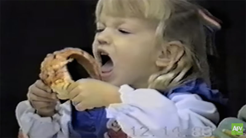 小妹妹完全無法理解Pizza的複雜結構,一直嘗試吃但吃不到的模樣真的太好笑了!