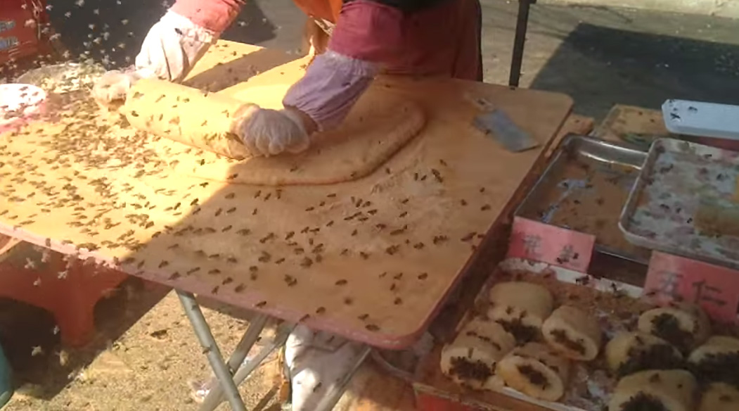 一位外國人來到了中國,看到了這不可思議的一幕。一群蜜蜂就這樣圍繞在一個賣麻糬的路邊攤,不知道是旁觀還是…