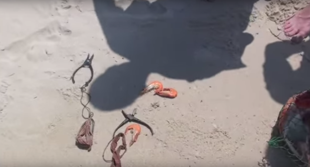 這個爸爸在影片中準備了幾隻煮熟的蝦子與一支鉗子就是要秀給你看看,沙灘底下其實都藏了很多條「海蚯蚓 (海蟲)」,是釣魚兒上鉤的最佳聖品啊!
