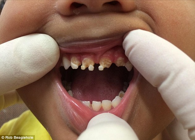 最近牙醫們發現了一個普通現象,有越來越多年幼的小孩 (甚至才18個月大的嬰兒) 出現了嚴重的蛀牙情形,讓頭痛的醫生們沒有選擇餘地只好把全部蛀掉、腐蝕掉的乳牙拔光光。
