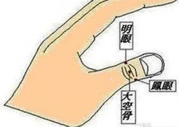 可以恢復視力的神奇穴位   在我們的拇指上有三個相鄰接的穴道,分別是明眼、鳳眼、大空骨(如下圖)。