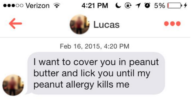 1.「我想讓妳全身沾滿花生醬,然後一直舔妳舔到我的花生過敏殺了我為止。」