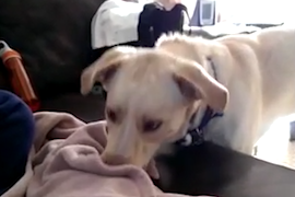 這隻狗狗看到小寶寶趴著睡覺發現到有不對勁,接下來他做的事會讓你想幫他打造一尊銅像永遠表揚!