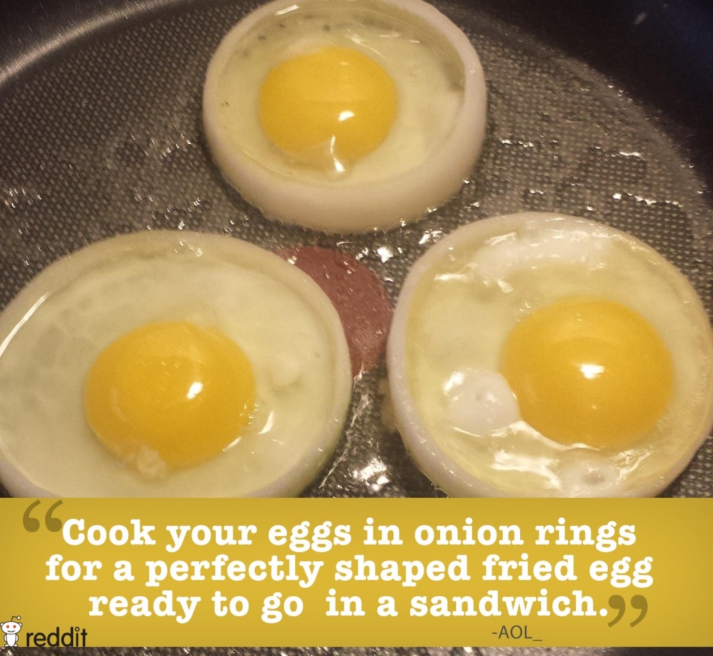 1. 在洋蔥圈裡打蛋就能輕鬆做出完美煎蛋形狀,放進三明治超可愛!