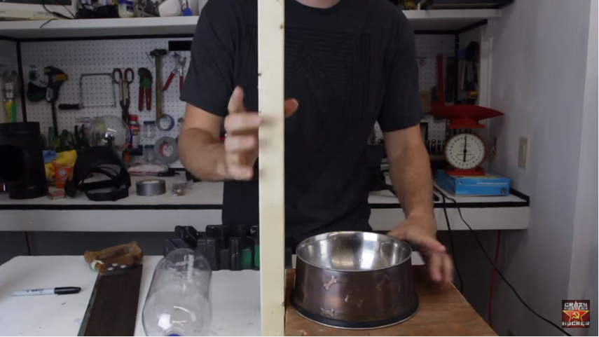他先拿出了這些超陽春材料,最後就完成了「出門一整天也不怕狗狗渴到」的養毛小孩必備神器!