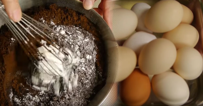 2.把530g的蛋糕面粉、16g的泡打粉、100g的黑巧克力粉,和70g的巧克力粉攪拌均勻。