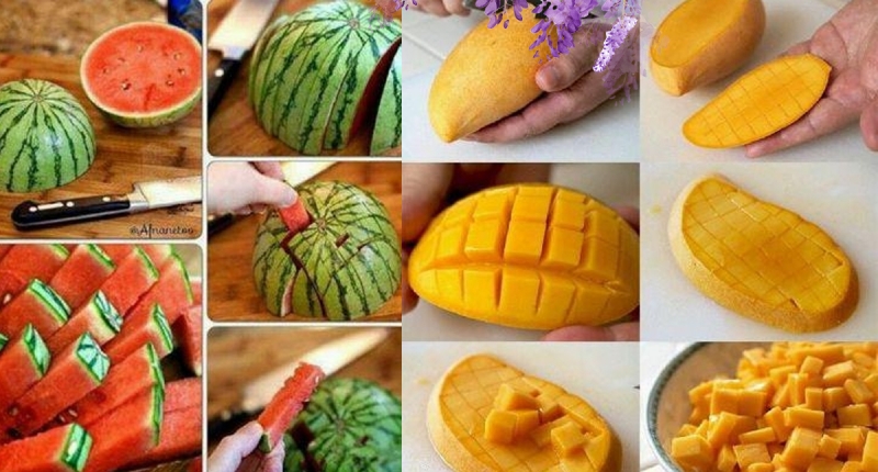 1、西瓜: 選好西瓜後,這樣切,方便嘴小的人吃,而且也不容易弄髒衣服。