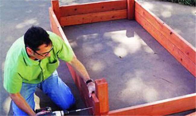 在木框底部鋪上鐵絲網,然後用堆肥、泥炭苔(或消毒過的土壤)、蛭石(或沙子)混合成培養土。
