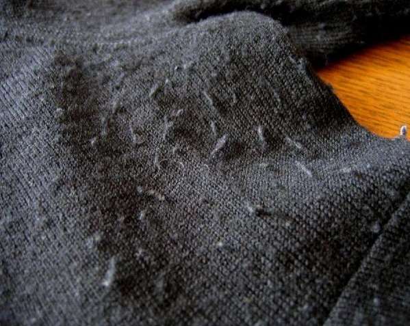 用一塊新的海綿,粗糙的那一面對衣物輕輕擦拭,不要太用力,以免磨損衣物。最後用手或者牙刷清理到毛球就可以了。