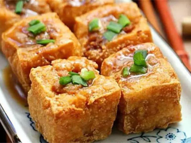 主料:肉(肥三瘦七為好)150g、豆腐泡半斤 輔料:蠔油一湯匙、澱粉兩小勺、胡椒粉三分之一小勺、鹽一小勺、植物油適量 1、豬肉剁泥。  2、調入澱粉,生抽,蠔油和少許鹽,拌勻備用。  3、豆腐泡表面戳一個洞。