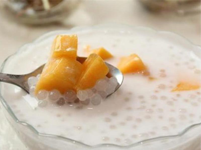 ); 6、煮好的西米用水泡好放在冰箱裡冷藏,小鍋裡再加入100克的水及50克的白糖; 7、置火上煮至白糖溶化後關火加入椰漿拌勻; 8、將芒果泥加入椰漿糖水中攪拌均勻後就是汁底,將西米撈入小杯中,加入芒果汁底再撒上西柚果肉和芒果丁就好了。 十、芒果椰汁黑糯米 聞起來濃鬱的椰香撲鼻,吃起來香甜的芒果香口,再加上黑米的軟糯口感,不僅適合年輕人,更適合老人和孩子,瞬間就可以俘獲全家人的味蕾...  用料: 芒果1個、糯米100克、椰汁150克、冰糖10克、水800毫升 準備:黑糯米洗凈後,提前用冷水浸泡2小時,芒果削去外皮,將核取出,果肉切丁備用; 1、 鍋中放入芒果核,加清水,水煮沸後繼續煮2分鐘; 2、 將芒果核撈出,加入泡好的黑糯米和泡米水; 3、 小火煮約40分鐘,煮至糯米軟熟,放入冰糖; 4、 用勺子不停攪拌,直至冰糖融化,倒入椰汁,攪勻後關火,放入芒果丁即可。