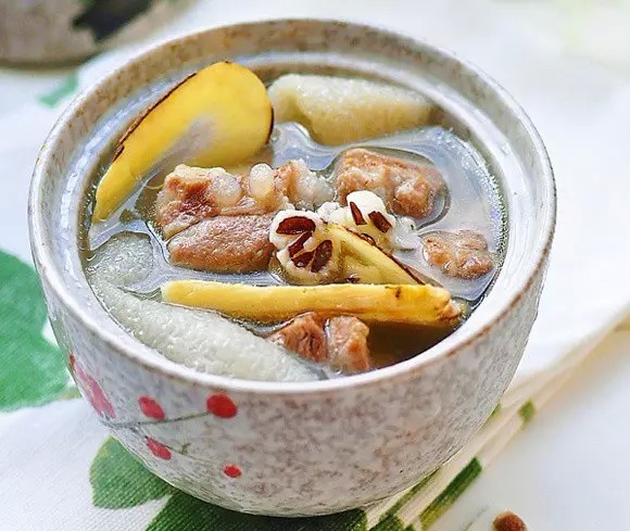 材料:黃瓜一斤(最好用老黃瓜)、薏仁二兩、豬骨一斤、蜜棗五粒。 做法: (1)豬骨洗乾淨,切塊,飛水。 (2)其他材料洗乾淨備用,黃瓜切塊。 (3)水煮滾,加入以上所有材料,用大火煮十分鐘,再轉文火煮兩個半小時,加入調味料即可飲用。 功效:去濕消滯、輕身健美、消除腿部肥腫 5、荷葉山楂健脾湯 針對:容易胃酸、飯後飽脹的人。