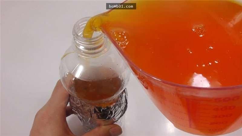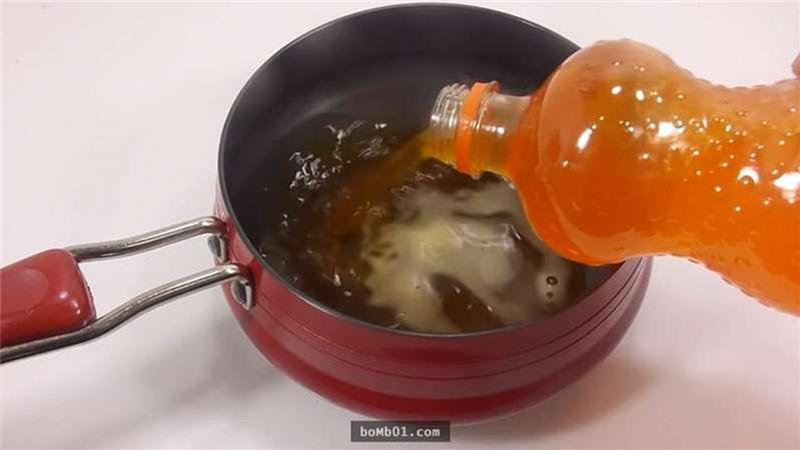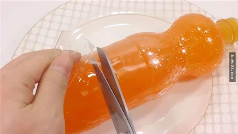原來還可以這樣「吃」汽水! 你愛喝芬達汽水嗎?下面這名網友就是香橙味芬達的忠實愛好者。她不想單純喝汽水,而是想方設法將芬達飲料變成了果凍,可以用刀切開享用。製作完成後的甜點與芬達汽水一模一樣,她用刀切下去的一刻,很多人都難以置信地瞪大了眼睛。 ▼將汽水倒進平底鍋中,再加入一些明膠(吉利丁),攪拌均勻。   ▼取下汽水瓶上的標籤,用美工刀在瓶身切一道口子。  ▼用鋁箔紙將汽水瓶身裹緊,防止液體從切開的口子處漏出來。